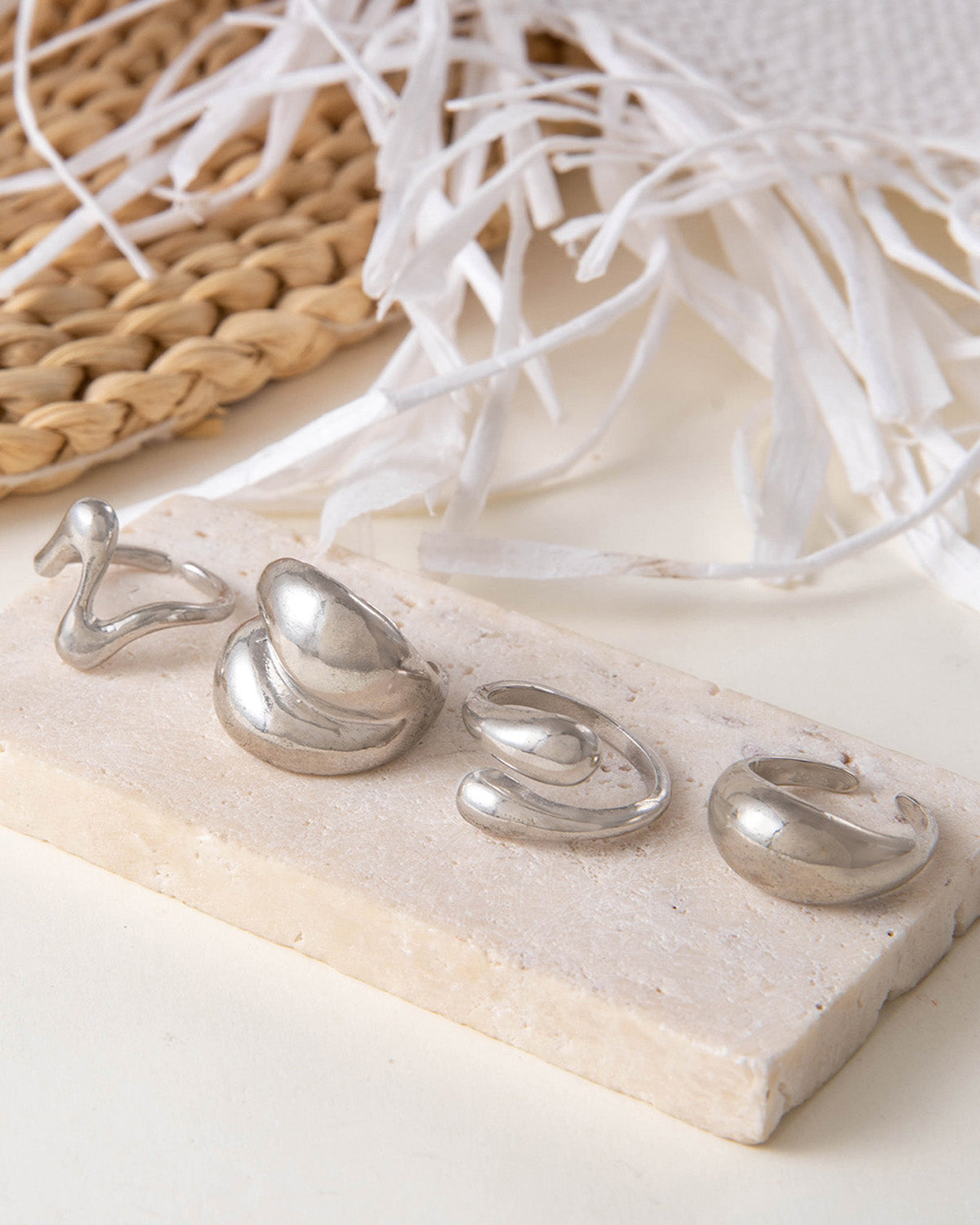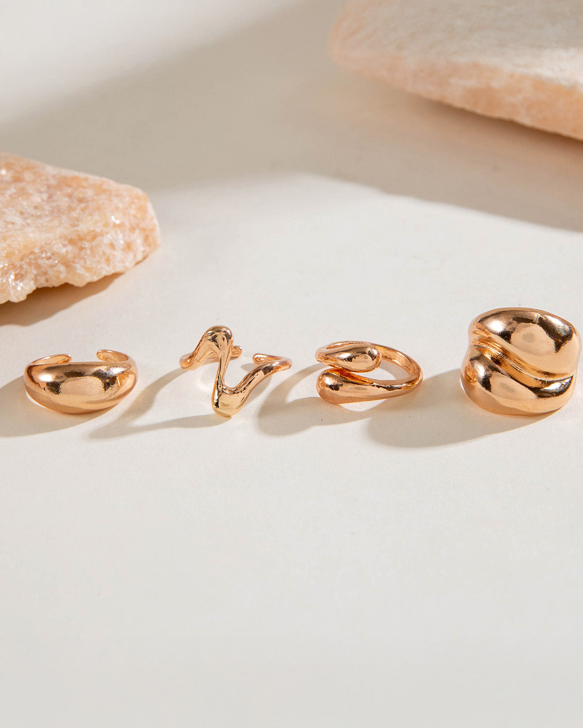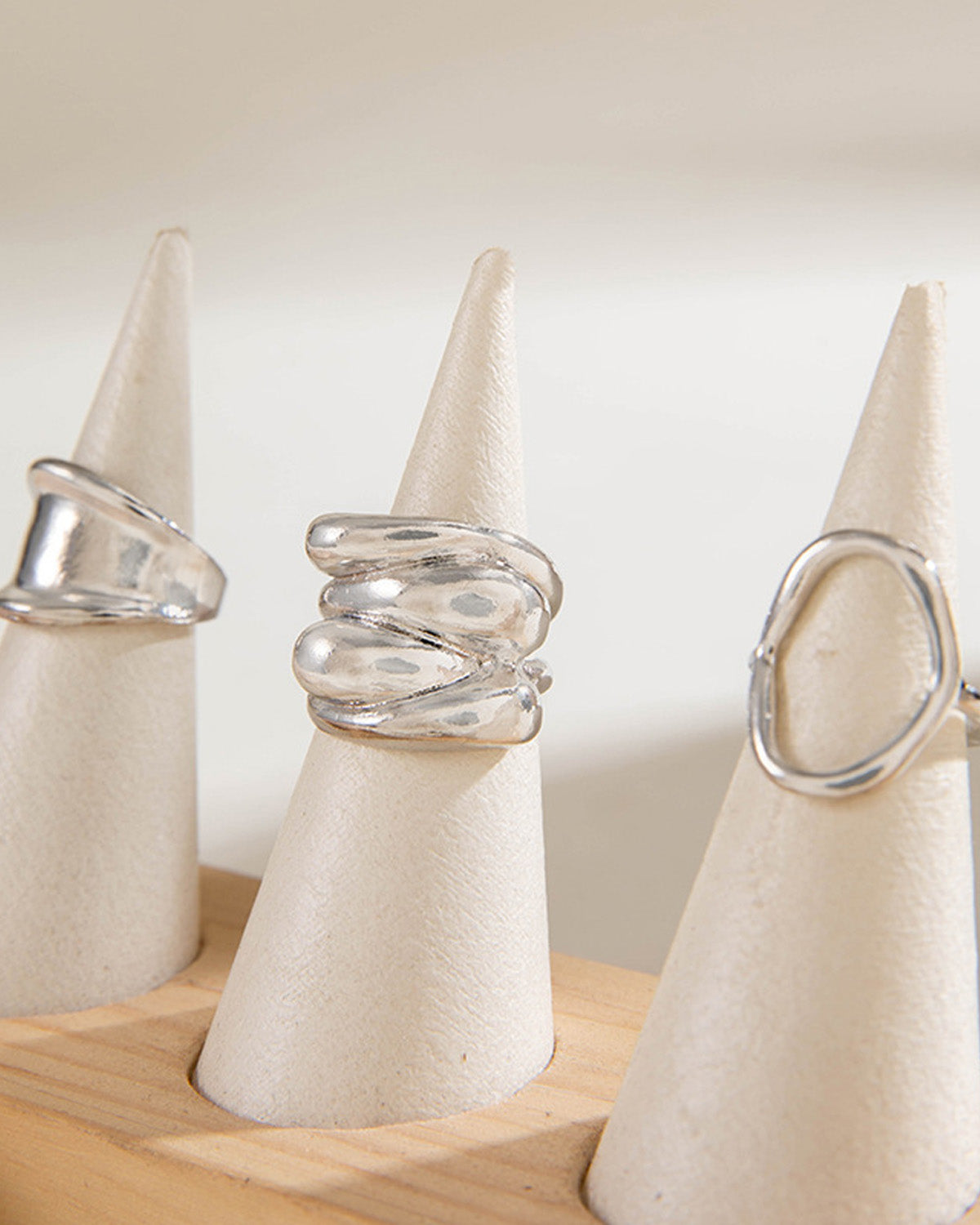 Geometric metal ring with textured lava lines—simple yet striking. The polished metallic finish elevates its contemporary charm for daily wear.