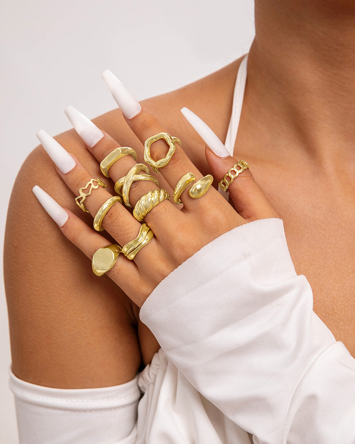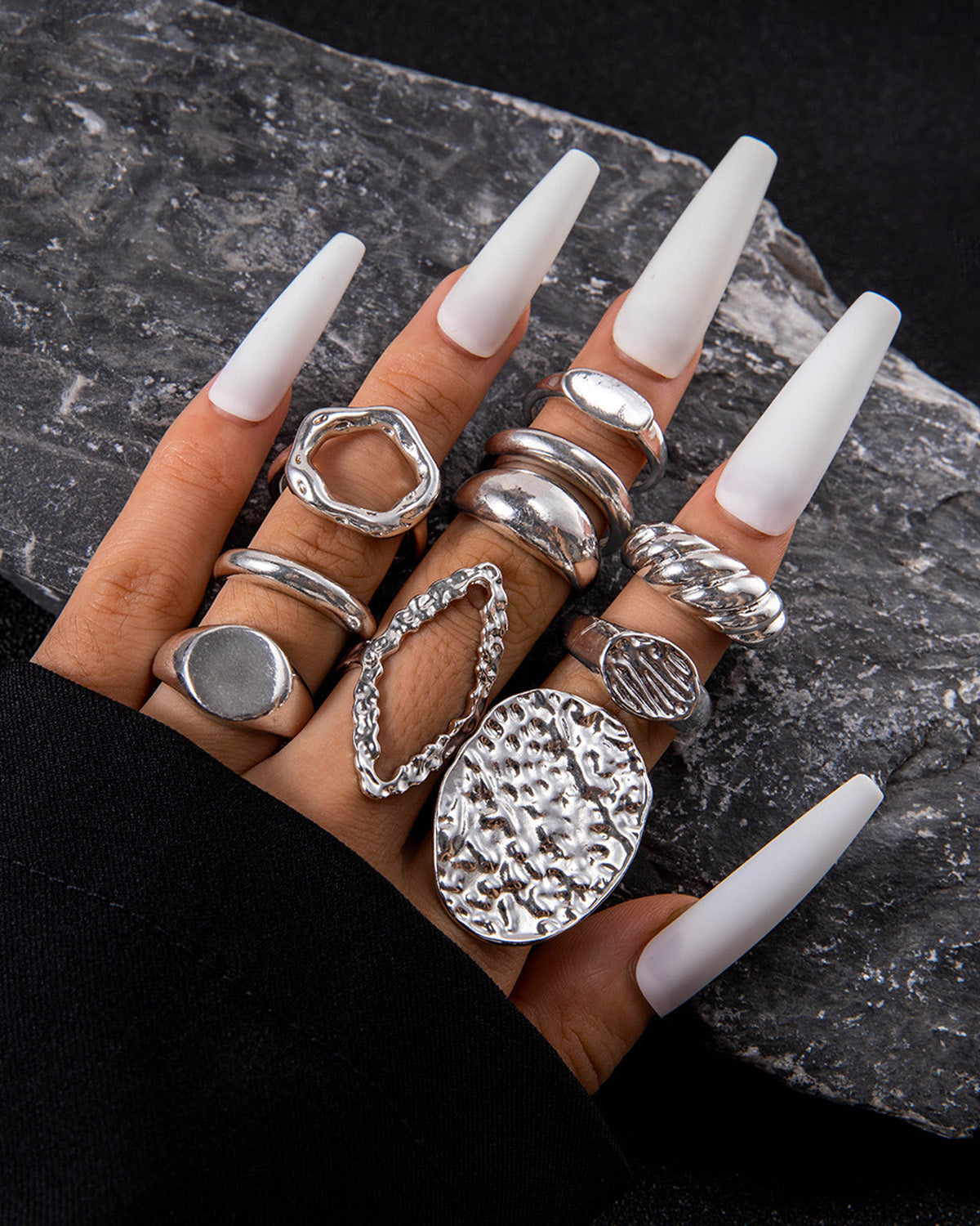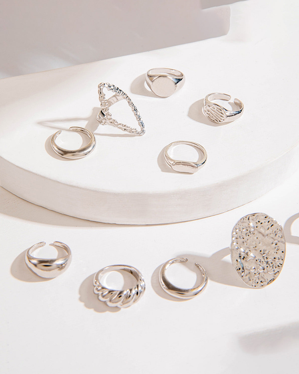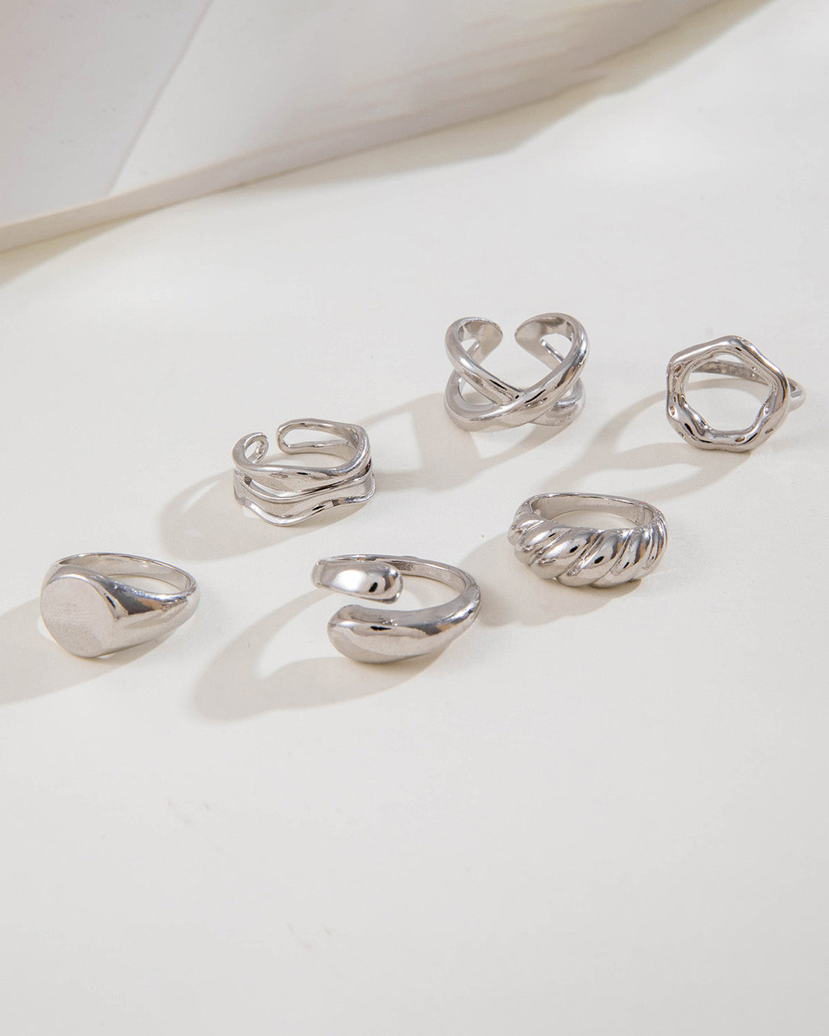 Geometric metal ring with textured lava lines—simple yet striking. The polished metallic finish elevates its contemporary charm for daily wear.