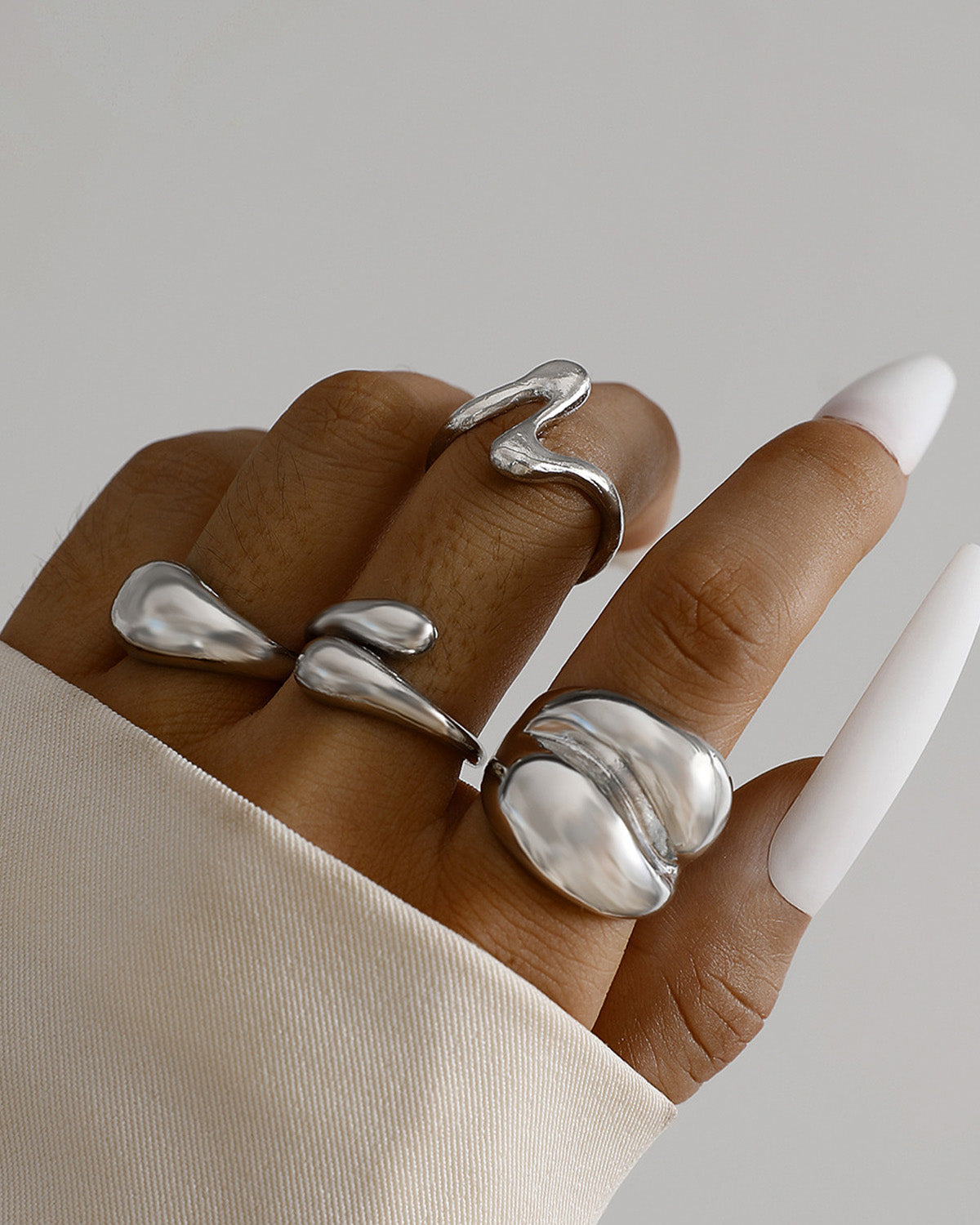 Sleek metallic ring featuring geometric shapes and lava-inspired lines. Crafted for modern minimalists, it adds an understated edge to any outfit.