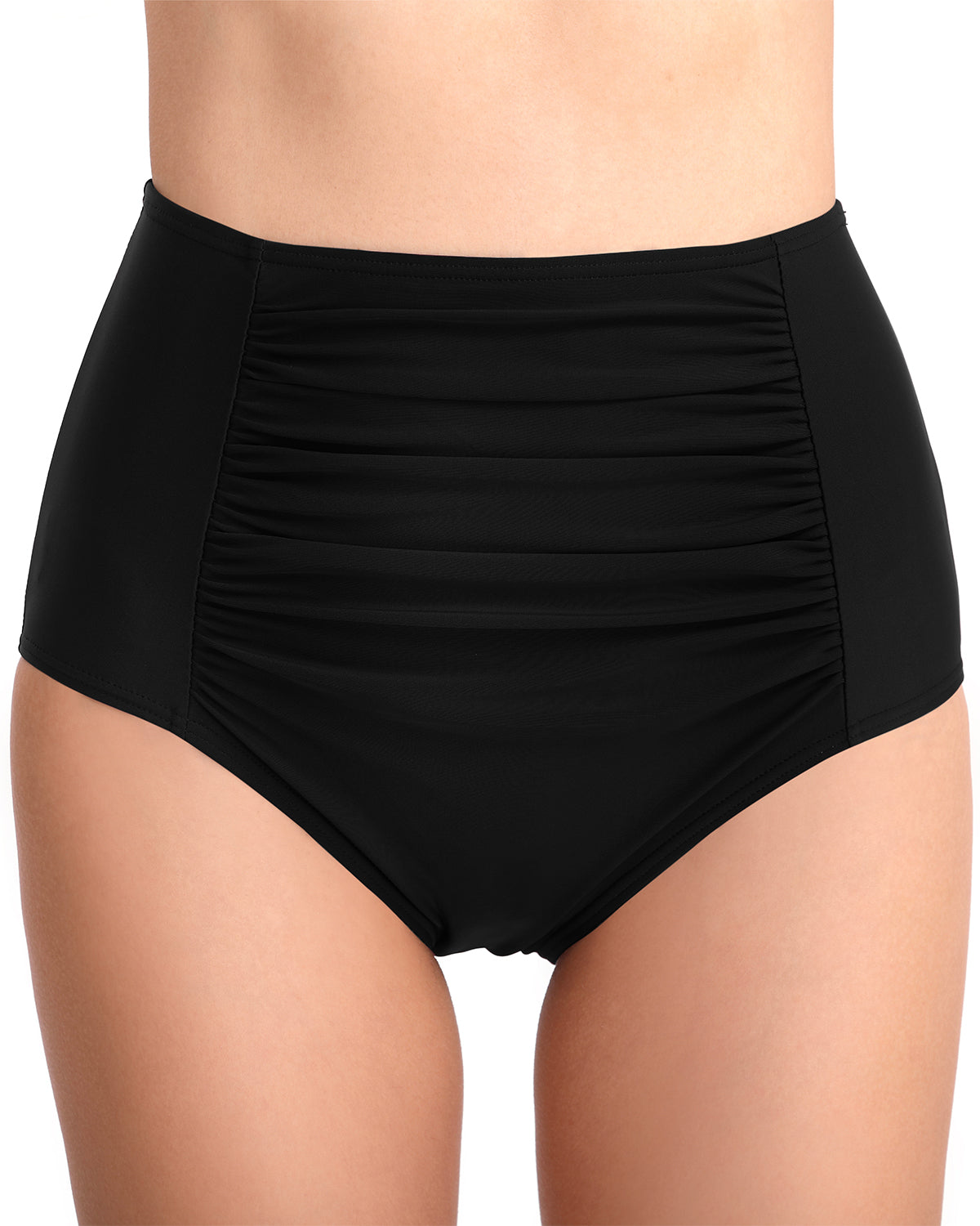 Tummy Control High-Waist Bottoms: The ruched design and high-waist cut work together to smooth the midsection and enhance your natural curves.